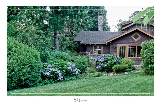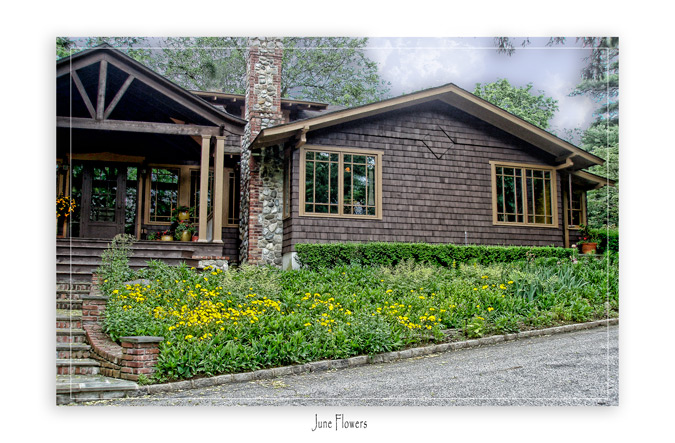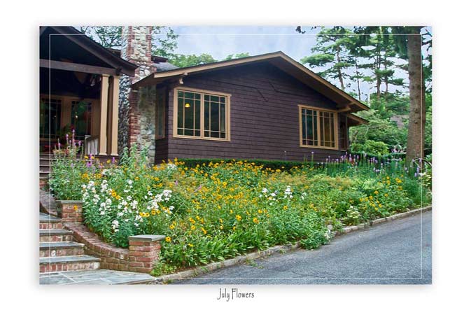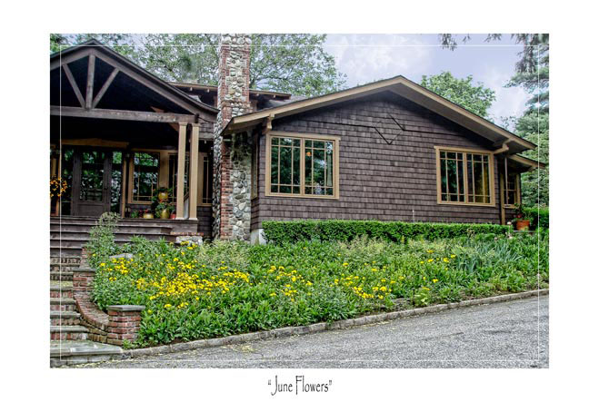 May brings English daisy's and Columbine into full bloom in the front garden, accented by the Red Leaf Lismachia. The Bamboo Garden in the rear of the property supplies all the material needed to build bamboo fences. Purple & Yellow Iris, Bleeding Hearts fill vases year after year to bring spring inside for the homeowners